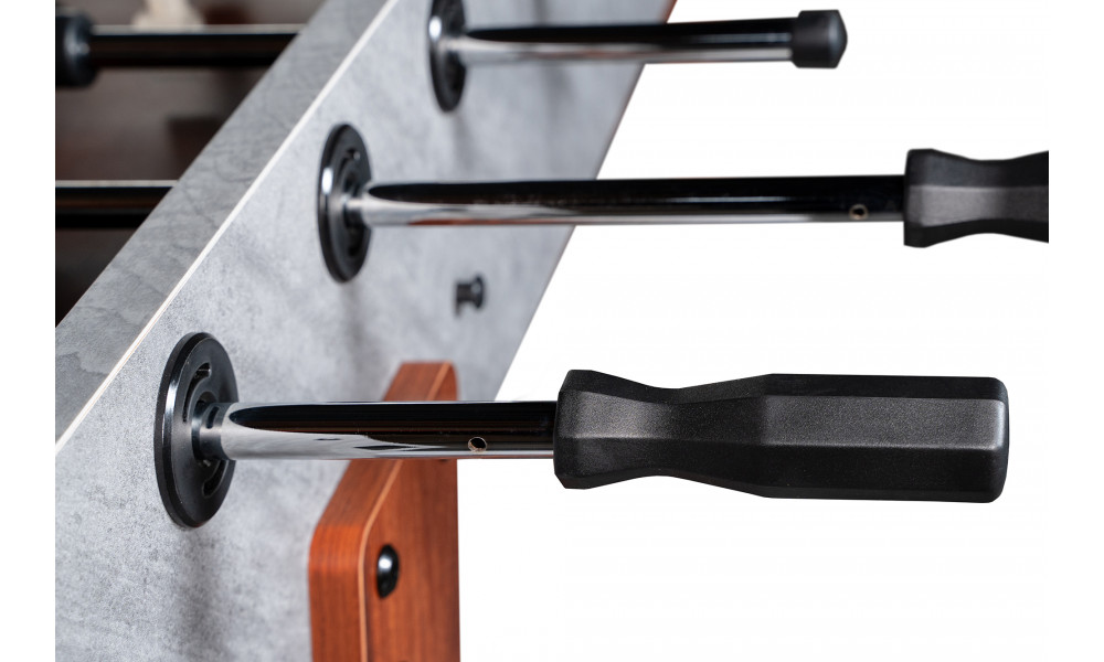 • Штанги, на которых фиксируются футболисты, не ржавеют, гладкие и прочные. Это способствует долгому сроку службы стола и гладкому движению игроков.